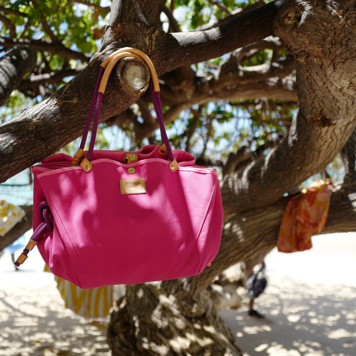 Crafted with a sturdy cotton canvas exterior and a waterproof nylon interior, this bag is reversible, so you can switch between textures and colors to match your mood or setting. The adjustable rope strap lets you wear it by hand, on the shoulder, or across the body—style it however you like.